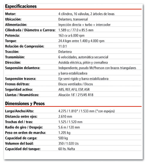 Comparte motor con el DS3, aunque dispone de 7 CV más a igual régimen (6.000 rpm). Se trata del 1.6 desarrollado por PSA-BMW utilizado en múltiples modelos de ambas automotrices, de cuyas virtudes nos hemos ocupado precisamente en los ensayos de los mismos.