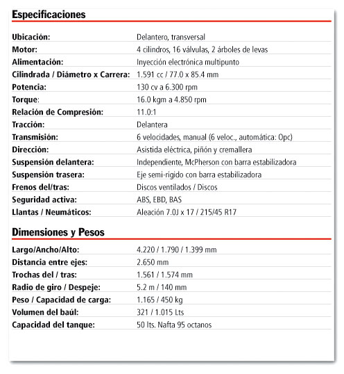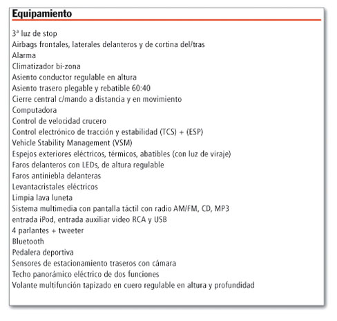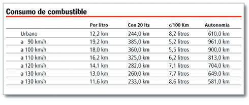 Se destaca la economía de combustible, especialmente a velocidad constante cuando la autopista o la ruta lo permiten, como así también en el circuito urbano, no abusando del acelerador. A 130 km/h, el velocímetro marca 137, + 7 km/h en toda la escala; utilizando el eficiente control de velocidad crucero recorre 260 km con 20 litros y la autonomía es de 650 km. Vale destacar que la unidad de la prueba tenía 10.000 km rodados y ello implica menor resistencia mecánica de motor y transmisión. Ese kilometraje se alcanzó realizando las pruebas por parte de los diferentes medios especializados, durante las cuales se somete al vehículo a mayores exigencias de las que se supone lo haría su propietario. Esto habla muy bien de la robustez general del auto, pues no se observaron ruidos de carrocería ni de suspensión.