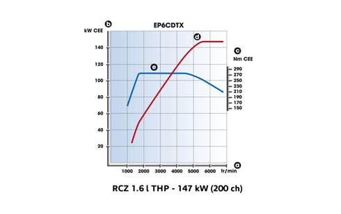 Lo impulsa el motor 1.6 litros turbo de 77.0 x 85,8 de diámetro por carrera desarrollado entre PSA y BMW, en el RCZ de 200 CV a 5.500 rpm, mientras que en otros modelos de ambas automotrices está presente con otros valores de energía.