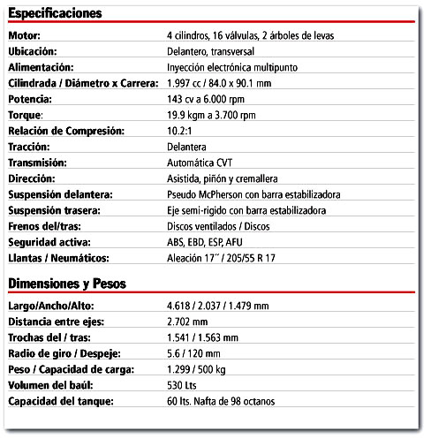 Lo impulsa el 2.0 16V atmosférico de origen Nissan, destacándose la distribución variable y el uso de cadena en el mando del doble eje de levas, con 143 CV a 6.000 rpm y casi 20 Kgm de torque a 3.700 rpm homologados, energía válida para mover la casi tonelada y media en orden de marcha.