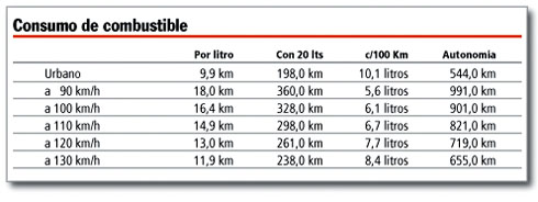 En ciudad fueron poco más de 10 litros cada 100 km y en autopista a 130 km/h midió 8.4 litros para la misma distancia. Según lo informado por serias publicaciones especializadas europeas, en origen el Manual del Propietario recomienda nafta de 95 octanos sin contenido de plomo ni sulfato de manganeso. También hay referencias de medición de potencia en banco de pruebas de rodillos que indican 230 CV, mientras que el fabricante publica 211 CV.