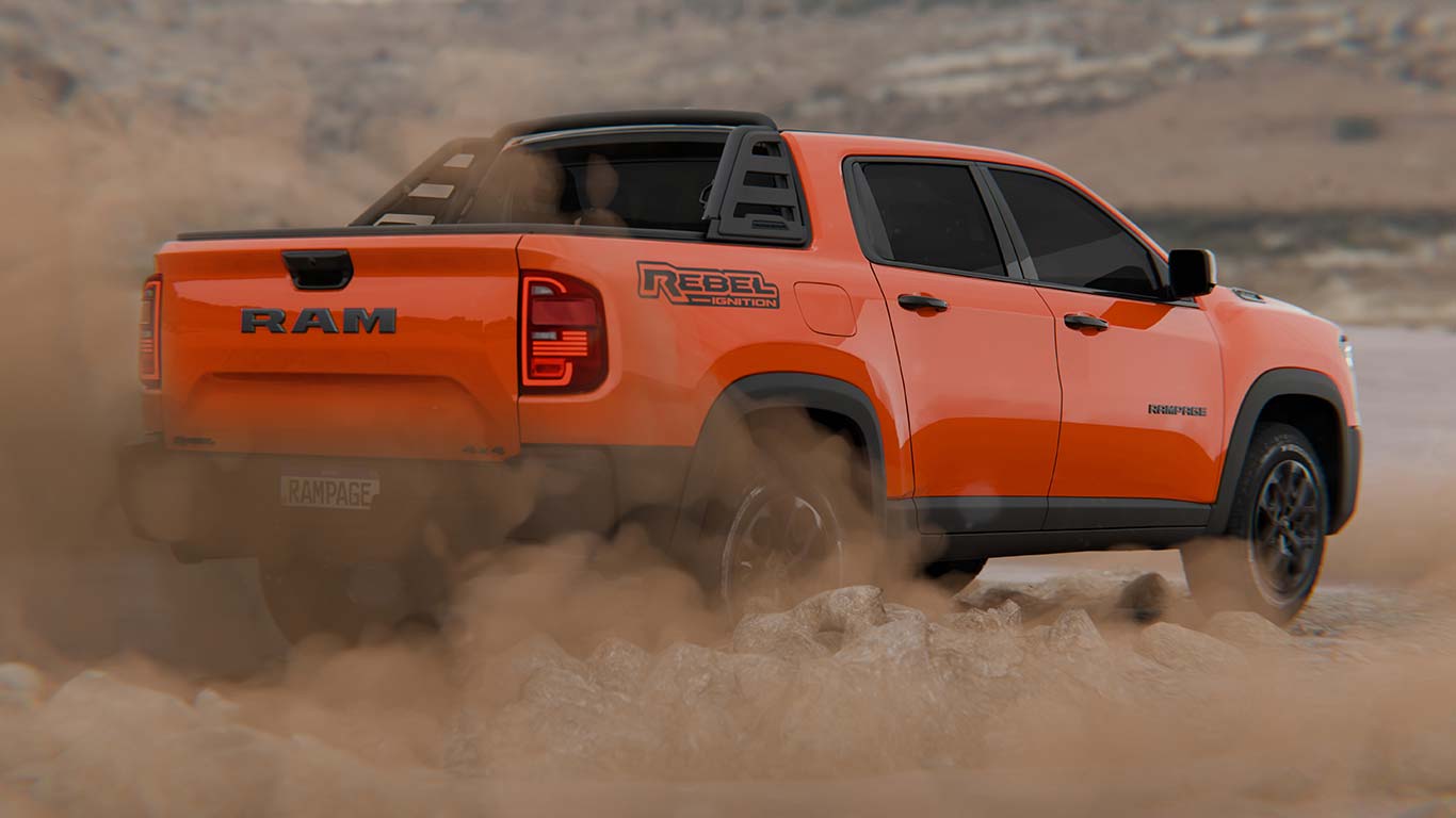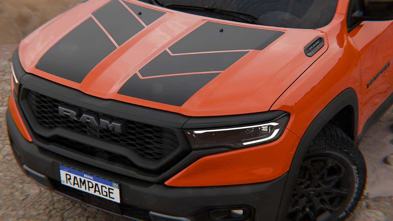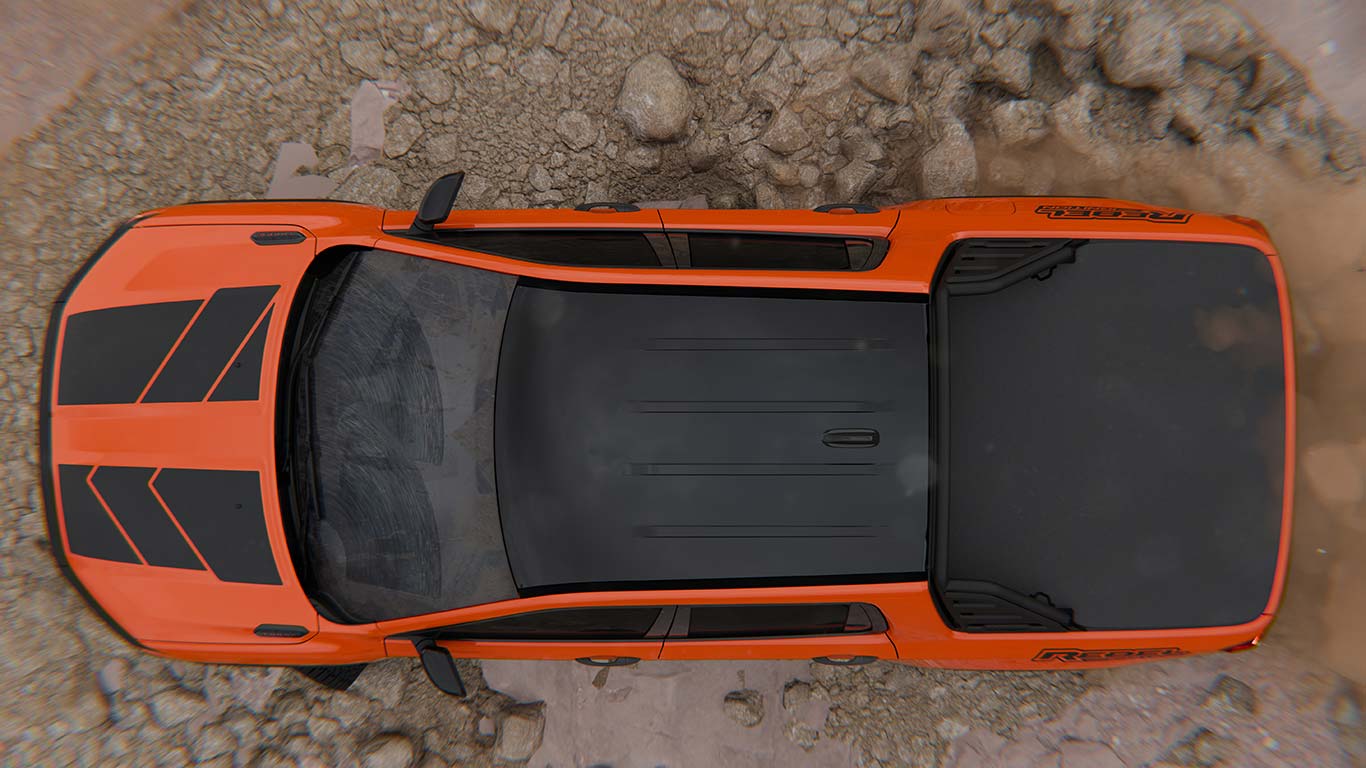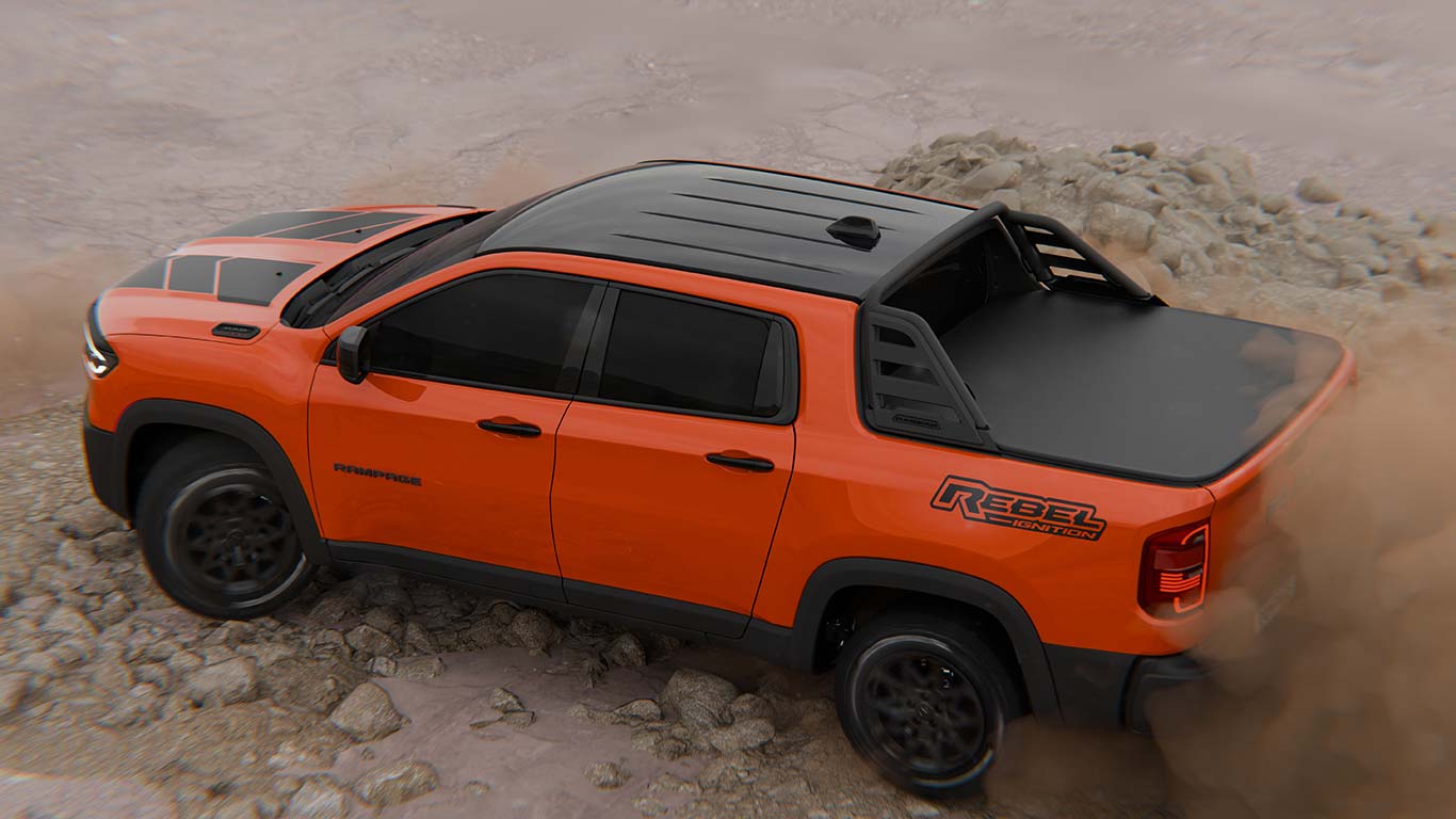 Por otro lado, la Rampage Ignition cuenta con nuevos apliques adhesivos en el capot y la zona trasera de los laterales, mientras que la caja de carga posee lona y una barra negra que modifica la silueta de la pick up.
