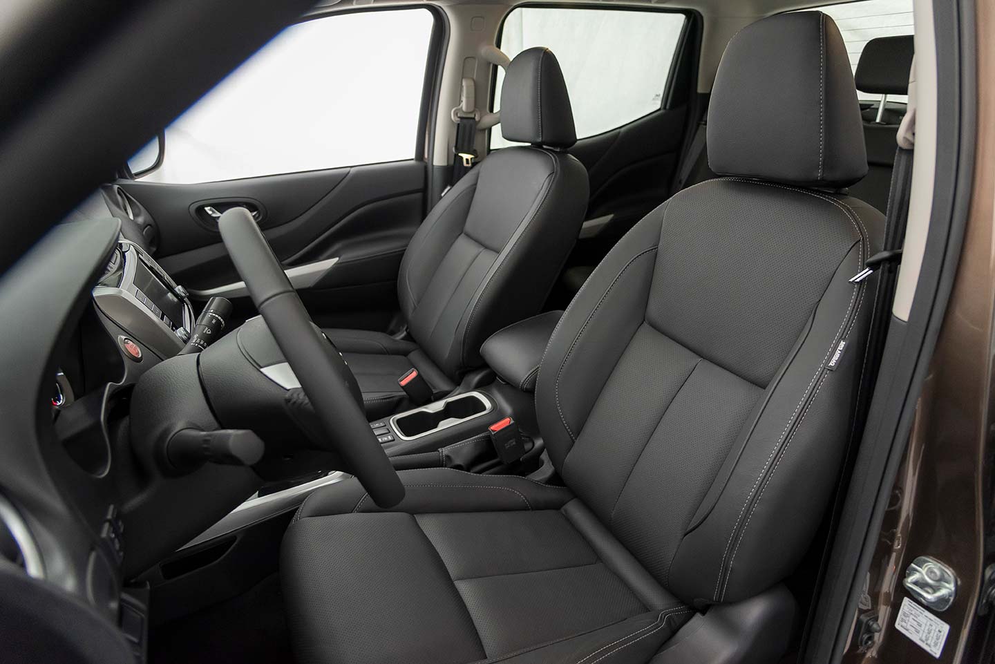 Adicionalmente, la Alaskan Iconic tiene luces LED delanteras, llantas de aluminio de 18 pulgadas (con neumáticos 255/60), paragolpes delantero con aplique cromado, barras de techo, barra de caja cromada, capota marítima, techo solar eléctrico, llave inteligente, botón de encendido de motor, butacas calefaccionadas, asiento del conductor con regulación lumbar, tapizado de cuero (como el apoyabrazos central), airbags laterales y de cortina y cámara 360°.