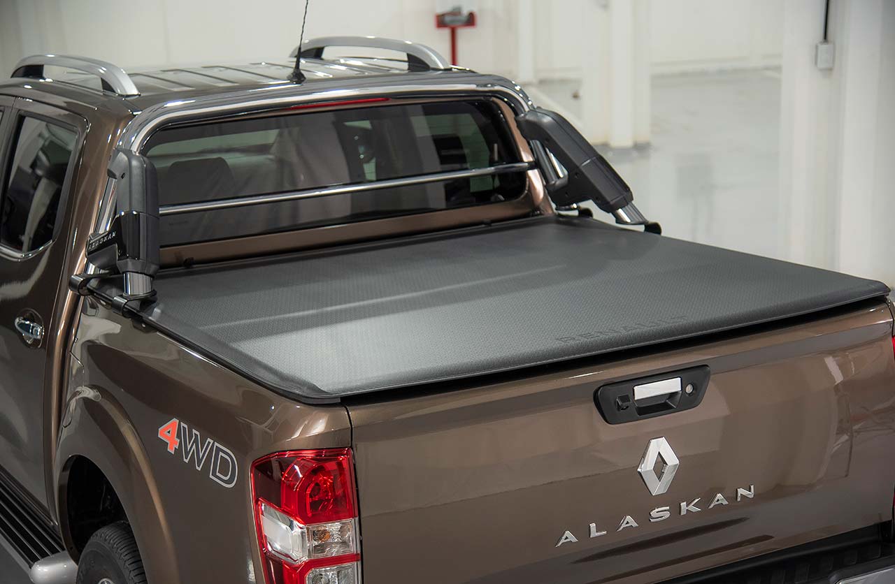 La pick up del rombo incorpora piezas y soluciones también presentes en la Frontier (con la que es producida en la Fábrica Santa Isabel de Córdoba). Naturalmente, se diferencia por su diseño frontal y trasero exclusivo. Además, se ofrece con un abanico de seis colores exteriores: Marrón Visón, Azul Cosmos, Gris Cuarzo, Gris Estrella, Blanco Glaciar y Negro Nacré.