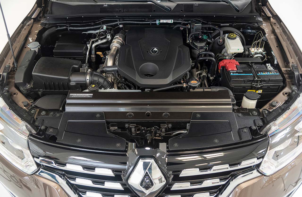 El resto de las alternativas de la camioneta de una tonelada estás equipadas con el motor diésel 2.3 con dos turbos que entrega 190 caballos y 450 Nm. Se combina con la tracción 4×2 o 4×4 y con la caja manual o la automática con siete cambios, esta última disponible sólo en la Alaskan más equipada (Iconic).
