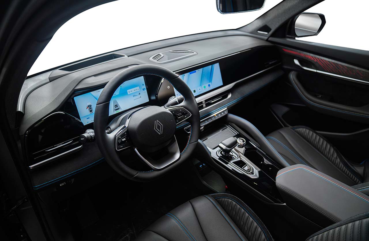 El equipamiento incluye sistema openR con tres pantallas de 12,3”, climatizador trizona, asientos delanteros calefaccionados y ventilados, asientos traseros calefaccionados, techo panorámico eléctrico, servicios conectados, llantas de aluminio de 19” y seis modos de manejo. La Esprit Alpine suma llantas de 20”, head-up display, audio Bose, volante calefaccionado con costuras, tapizado de gamuza con bordado y cinco modos de manejo.