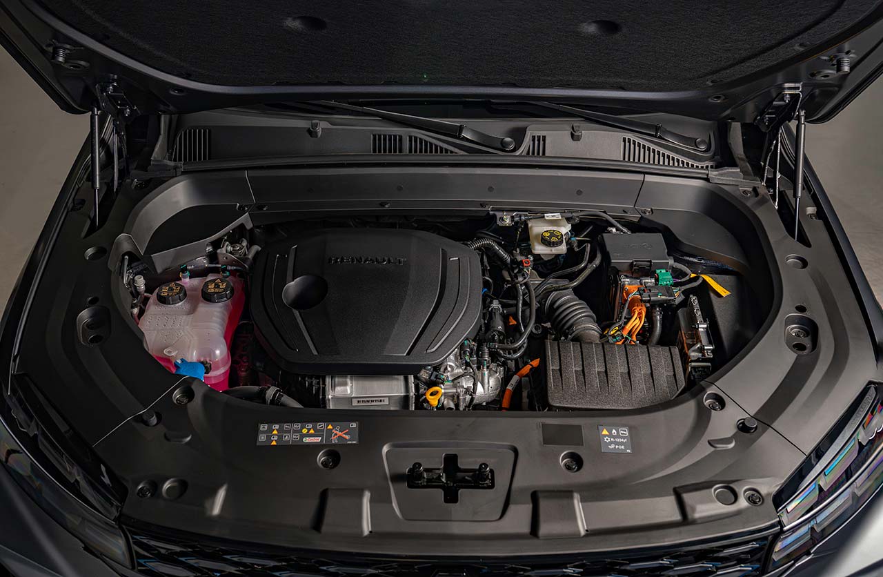 La versión Esprit Alpine full hybrid E-Tech posee un sistema híbrido con motor 1.5 turbo (144 CV y 230 Nm) y dos motores eléctricos (136 CV en total). Combinados alcanzan los 245 CV y 320 Nm. Además, tiene caja automática DHT Pro, tracción delantera y una batería de ion-litio de 1,64 kWh.