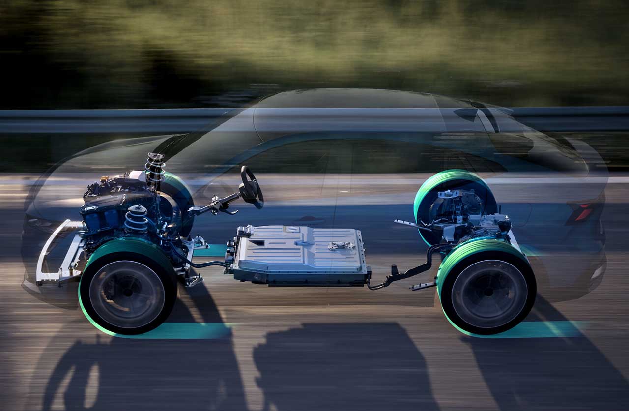 El conjunto, que brinda un total de 300 caballos y está acompañado por una caja multimodo inteligente sin embrague, brinda una aceleración de 0 a 100 km/h en 6,4 segundos, mientras que el otro híbrido demora 8.9 segundos. Otros sistemas destacados son la dirección en las ruedas traseras y la suspensión con sistema activo con cámara predictiva.