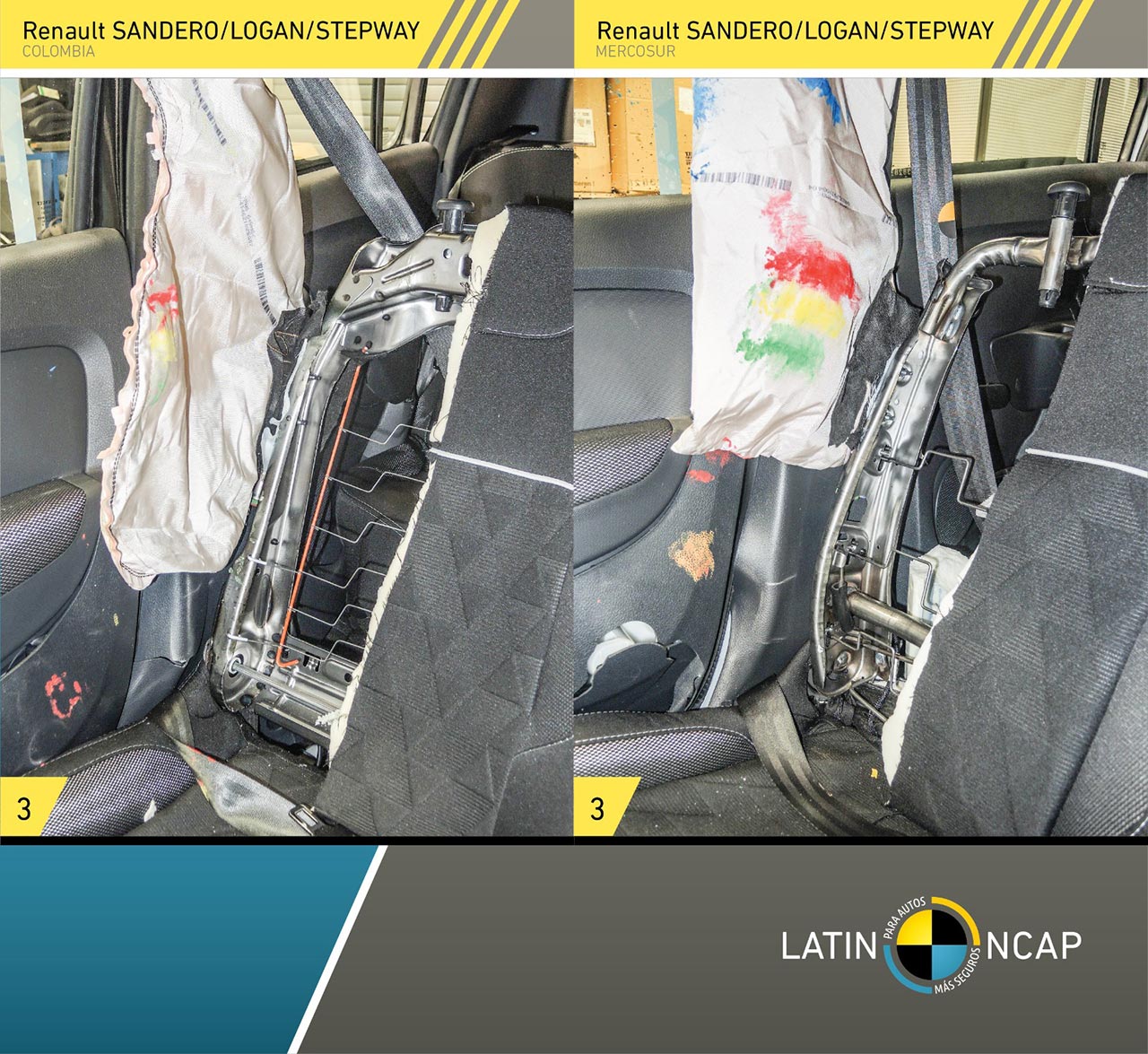 Latin NCAP encontró que existen tres principales diferencias que explican los distintos niveles de protección ofrecidos por cada origen de los Sandero/Logan/Stepway: intrusión estructural en la protección contra impactos laterales, estructura de los asientos delanteros y el tamaño y la forma de las bolsas de aire laterales de cabeza-tórax.