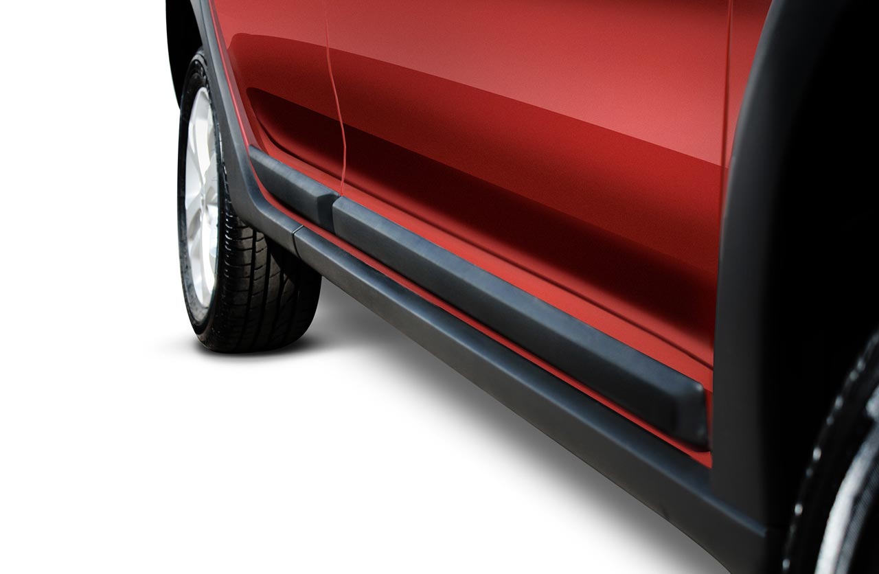Las novedades comienzan en el exterior, donde posee el emblema de la marca de indumentaria en las puertas delanteras, junto al de la versión. Además, cuenta con barras de techo transversales y molduras de protección en la zona inferior de las puertas.