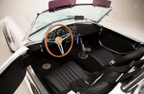La carrocería de fibra de vidrio, por su parte, está disponible únicamente en color azul con las rayas blancas, una personalización que es sinónimo de Cobra. En ambos casos, posee salidas de escape a cada lado y frenos de nuevo desarrollo. Se comercializa sin motorización, algo en lo que la marca ya está trabajando.