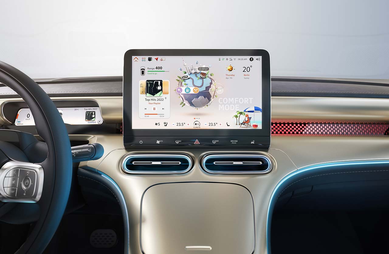 En el interior tiene una configuración de cinco plazas, un tablero de instrumentos digital con pantalla de 9,2 pulgadas y otra pantalla para la zona central con 12,8”. Además, hay un baúl delantero con 15 litros y otro trasero con 411 l.