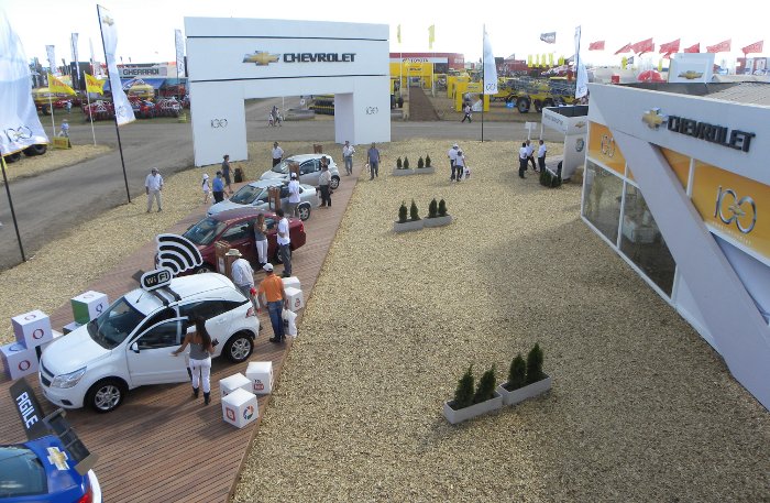 Chevrolet aprovecha Expoagro para dar comienzo a los festejos por sus 100 años con un stand de 2400 m2, donde exhibe su gama de vehículos incluyendo las recientes presentaciones, pick up Montana, Agile con WiFi y el adelanto del nuevo Spark que próximamente llegará a los concesionarios argentinos.