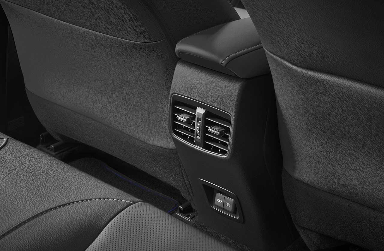 En las plazas traseras ahora posee de serie nuevas salidas de aire y dos puertos USB-C, mientras que la seguridad de los Corolla GR-Sport y Altis Premium sumó sensores de punto ciego y alerta de tránsito cruzado trasero.