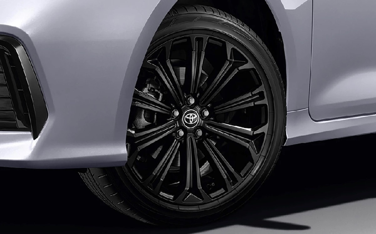 El exterior de este Corolla GR Sport posee el diseño general conocido junto a personalización en la que se destacan los paragolpes y el color negro para las llantas de aleación, los espejos, el techo y el alerón ubicado en la tapa del baúl.