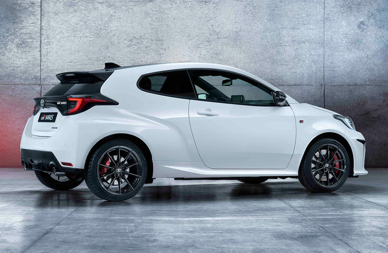 Estéticamente, el “hot hatch” de la automotriz japonesa se diferencia del Yaris convencional (ofrecido en Europa y Japón) por su diseño exclusivo, que incluye una carrocería con sólo dos puertas y con un techo 91 milímetros más bajo. Fue construida con polímero de fibra de carbono y aluminio, mientras que las llantas de aleación son oscuras y tienen 18 pulgadas.