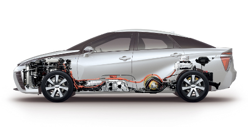Utiliza una celda de combustible encargada de captar oxígeno del ambiente y combinarlo con el hidrógeno almacenado en dos tanques de alta presión construidos en plástico reforzado con fibra de carbono. La unión de ambos elementos genera una reacción electroquímica que da como resultado energía eléctrica. El sistema sólo desecha vapor de agua, el cual es eliminado a través de una válvula.