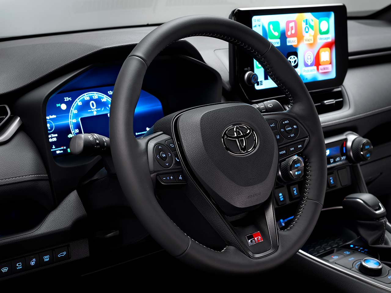 La alternativa además propone un habitáculo con asientos delanteros deportivos con apoyacabezas con el logotipo “GR” y un tapizado con efecto de gamuza y cuero sintético acompañado por las costuras plateadas, que además están en el volante y el selector de la caja de cambios.