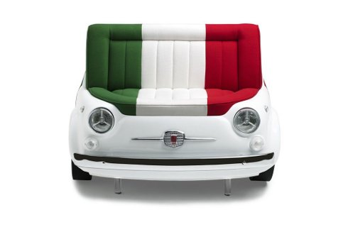 El sofá, apodado “Panorama”, cuenta con un marco perimetral de acero que se aproxima a la forma de la parte delantera del Fiat 500. Tanto el asiento como el respaldo son acolchados, y están hechos de poliuretano en diferentes densidades. La tapicería, de tela o cuero, lleva consigo los colores de la bandera italiana. Y los detalles no faltan, el sofá cuenta con ruedas laterales también hechas en poliuretano y detalles cromados.
