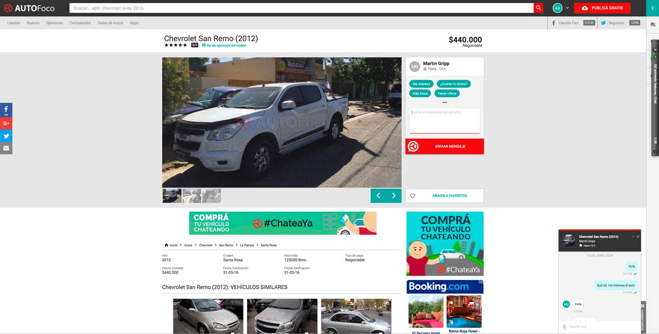 -Chat: Si nos detenemos a pensar, lo primero que hacemos cuando buscamos contactar a alguien de forma rápida es enviar un whatsapp. Por eso, las nuevas plataformas van en esa dirección; crearon un chat que permite hablar directamente con el vendedor para hacer una consulta sobre el vehículo, solicitar una prueba de manejo o incluso confirmar una compra. Se puede chatear desde la computadora o desde la aplicación móvil.