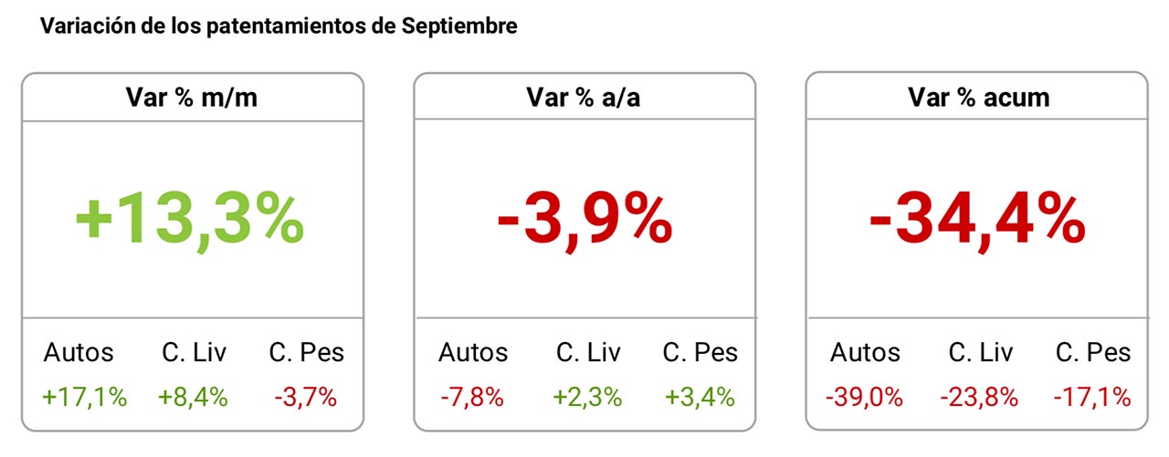 De esta forma se alcanzaron 249.224 patentamientos acumulados en los nueve meses transcurridos del año, una baja interanual del 34,4%.