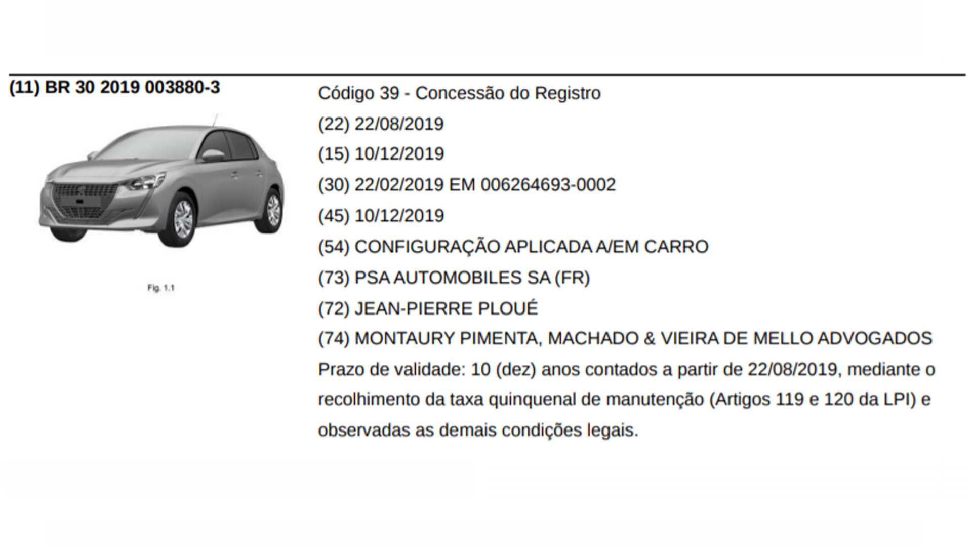 Peugeot continúa avanzando con el 208 que será producido en el centro de producción El Palomar desde 2020. En Brasil, Motor 1 divulgó las imágenes del registro del modelo en el Instituto Nacional de Propiedad Industrial (INPI), lo que confirma que el producto regional compartirá el diseño exterior con el europeo. Además, anticipó que continuará la fabricación del modelo anterior en Porto Real.