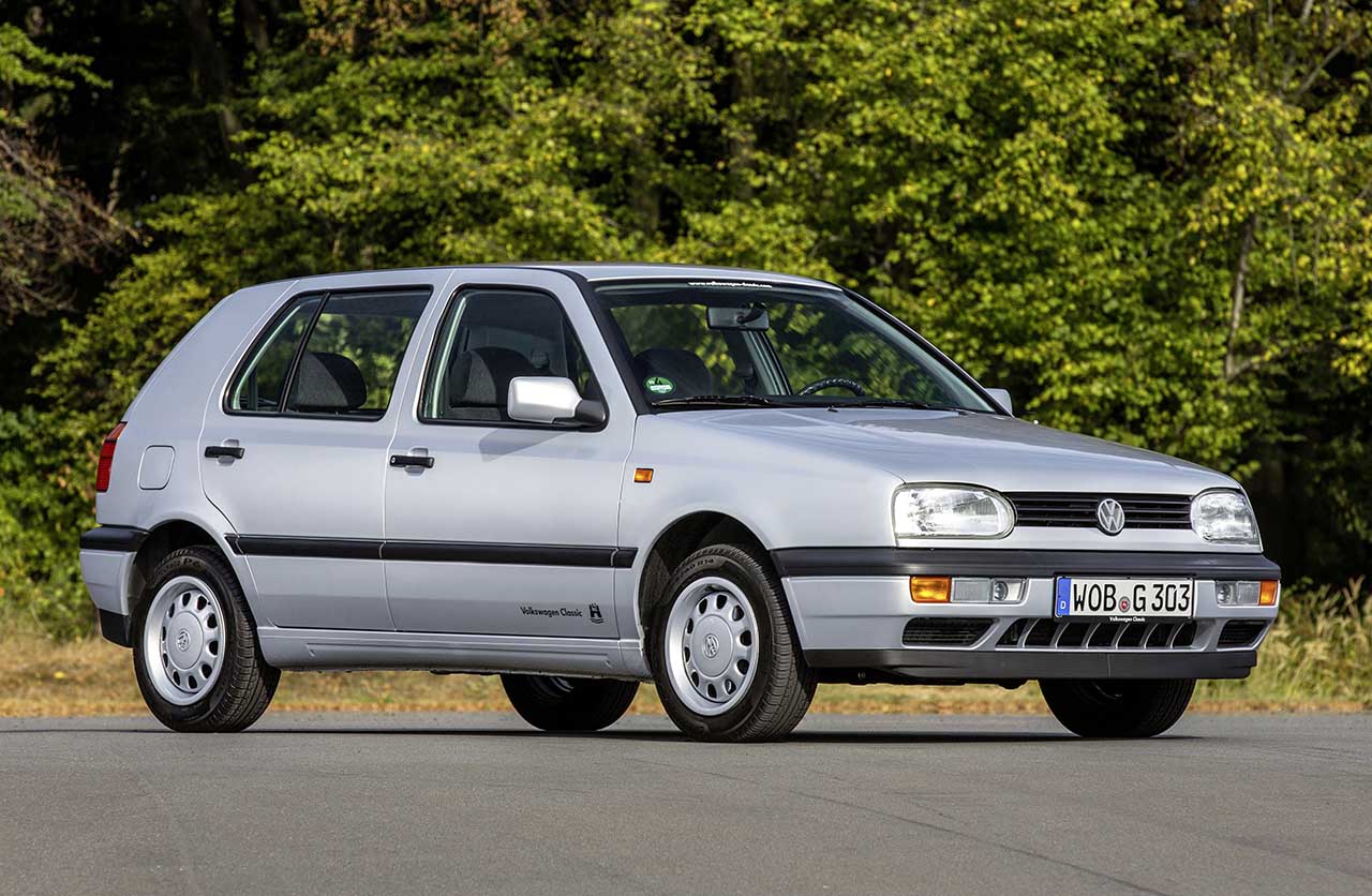Golf III – La seguridad es lo primero. A partir de agosto de 1991, Volkswagen inició una nueva era de seguridad con el Golf III. Este fue el primer modelo de la línea de productos disponible con airbags frontales a partir de 1992, y los grandes avances en el área del diseño de la carrocería también condujeron a mejoras significativas en sus propiedades en caso de colisión. Otros hitos de la gama están asociados al Golf III, que hasta 1997 se fabricó 4,8 millones de veces: por ejemplo, el primer motor de seis cilindros (VR6), el sistema de control de crucero y los primeros airbags laterales. Por primera vez, este Golf estuvo disponible en versión familiar.