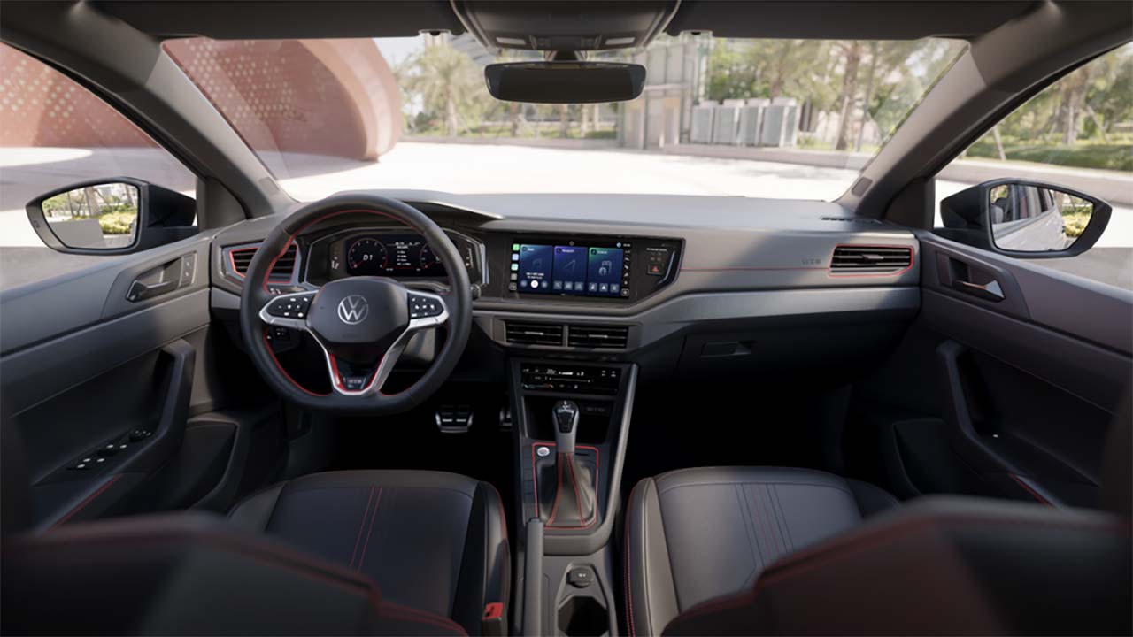 En el interior oscurecido hay nuevas butacas delanteras, tapizados exclusivos, detalles rojos, tablero digital con pantallas de 10,25 pulgadas (con nuevos gráficos y detalles rojos exclusivos), conectividad inalámbrica con Android Auto y Apple CarPlay, cargador inalámbrico y sistema multimedia VW Play Connect. La seguridad viene con seis airbags y ayudas a la conducción.