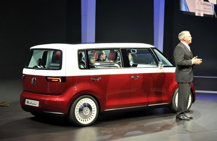 Las similitudes terminan ahí ya que en este caso el motor es delantero (vs. el original Boxer posterior) y es considerablemente más corto con 3.990 mm, pero más ancho que la Combi. El interior ofrece dos filas de asientos y su consola central es un iPad, proveyendo también conexión a internet, GPS y otras bondades.
