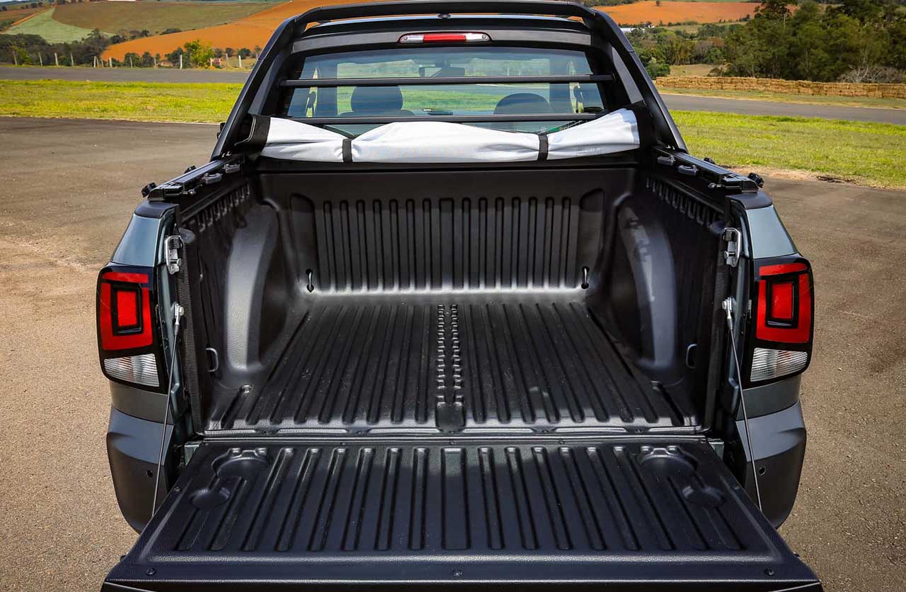 La Extreme además cuenta con uno de los dos nuevos colores para la carrocería, barras en el techo y la caja (combinada con la lona), llantas de aleación de 15”, adhesivos de la versión en el capot y los laterales y emblema en los parantes traseros.
