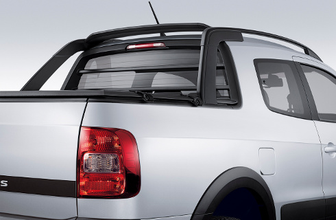 El equipamiento en el nivel más básico incluye aire acondicionado, dirección asistida, doble airbag frontal, frenos con ABS, llantas de aleación de 15″, paragolpes color carrocería, radio con CD, MP3, Bluetooth, tarjeta SD y USB, cobertor de caja en PVC, overfenders en negro, tapa de caja de carga con apertura amortiguada y llave, alarma antirrobo, ventanillas traseras con apertura basculante, cierre centralizado y levantacristales eléctricos (con sistema one touch), asiento de conductor regulable en altura, barras portaequipajes de techo y spoiler trasero. A todo eso, la Pack High adicionada computadora de a bordo I-System, luces antiniebla delanteras y trasera y volante multifunción.