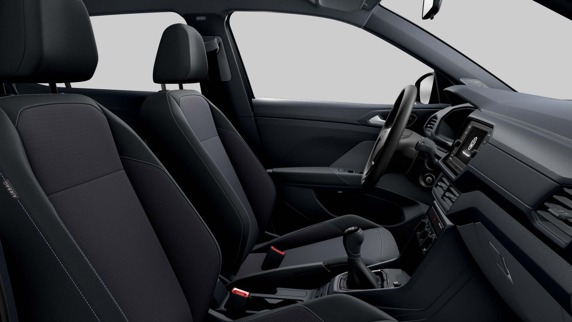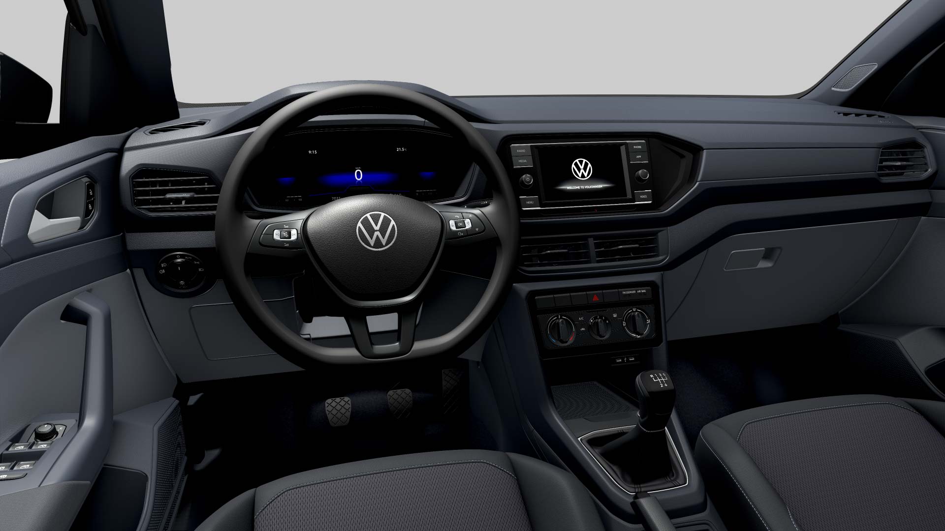 El equipamiento de confort incluye climatizador (con aire acondicionado) manual, volante multifunción revestido con cuero, tablero digital VW Digital Cockpit, computadora de a bordo, sistema multimedia con pantalla táctil de 6,5” y App Connect.