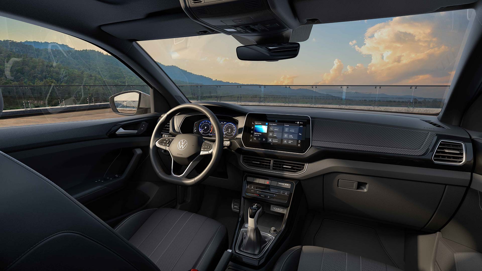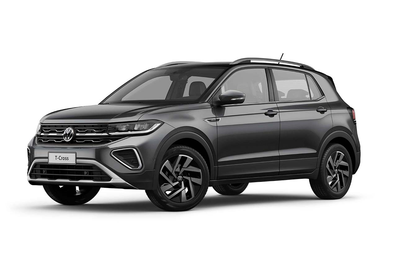 La gama comienza con el T-Cross Trendline, que viene con un equipamiento que incluye llantas de aleación de 16”, nueva pantalla semiflotante de 10 pulgadas con VW Play y Wireless App-Connect, control de velocidad crucero, indicador de presión de neumáticos, sensor de estacionamiento trasero, tablero digital de 8”, volante multifunción con cuero, control de estabilidad y seis airbags.