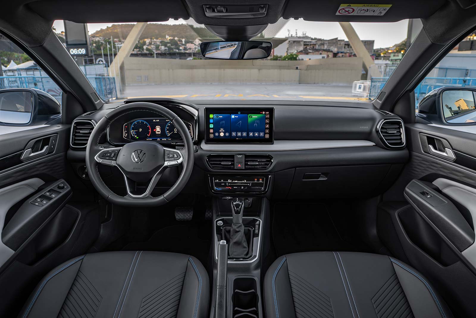 VW también mostró el interior, que entre sus características posee tablero digital de 10 pulgadas, sistema multimedia VW Play Connect con pantalla elevada, cargador inalámbrico, iluminación ambiental. La seguridad incluye asistencias a la conducción, aún no informadas en detalle.