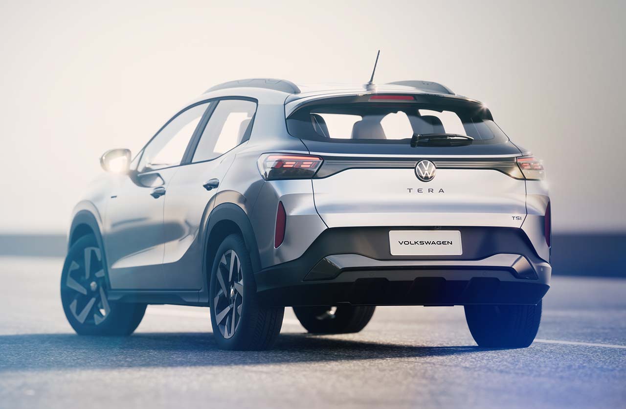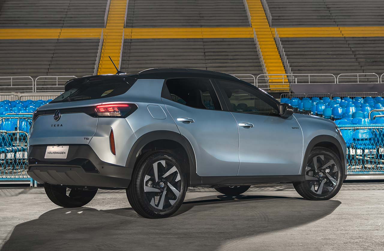 En la zona trasera, el Tera cuenta con un ensanchamiento del parante C, mientras que sus llantas de aleación tienen 17 pulgadas y los plásticos oscuros dominan todo el sector inferior del SUV, incluyendo los guardabarros y el paragolpes trasero. También se destacan los “Easter Eggs”: en la luneta trasera hay dibujos de los Beetle, Gol y Tera.