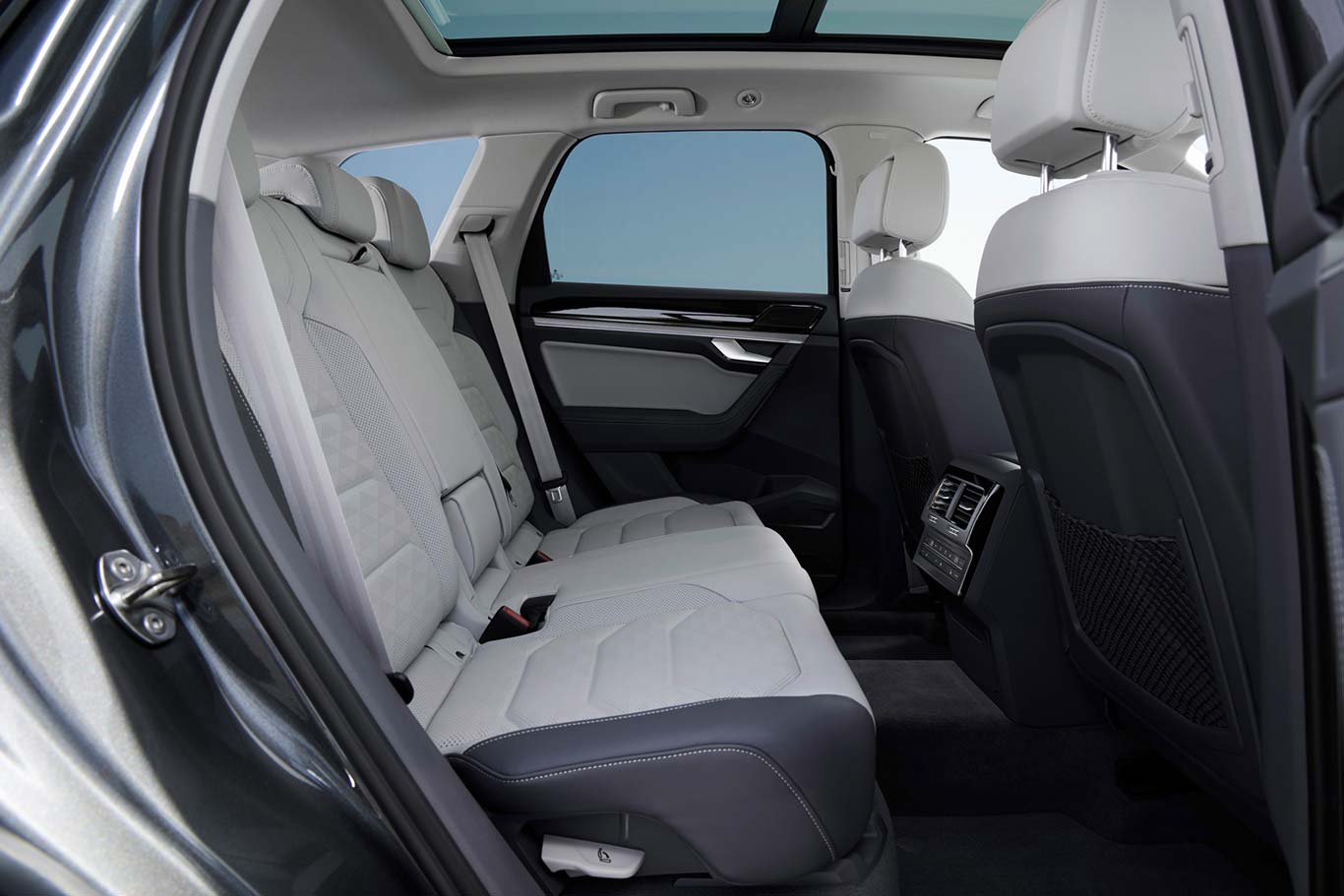 El SUV de lujo de la marca alemana también viene con nuevas ópticas y luces matriciales LED HD, junto con una zona posterior en la que se destacan las nuevas ópticas unidas por una tira luminosa con tecnología LED. A eso se suma el flamante logotipo de Volkswagen iluminado con color rojo y la versión R-Line con estilo deportivo.