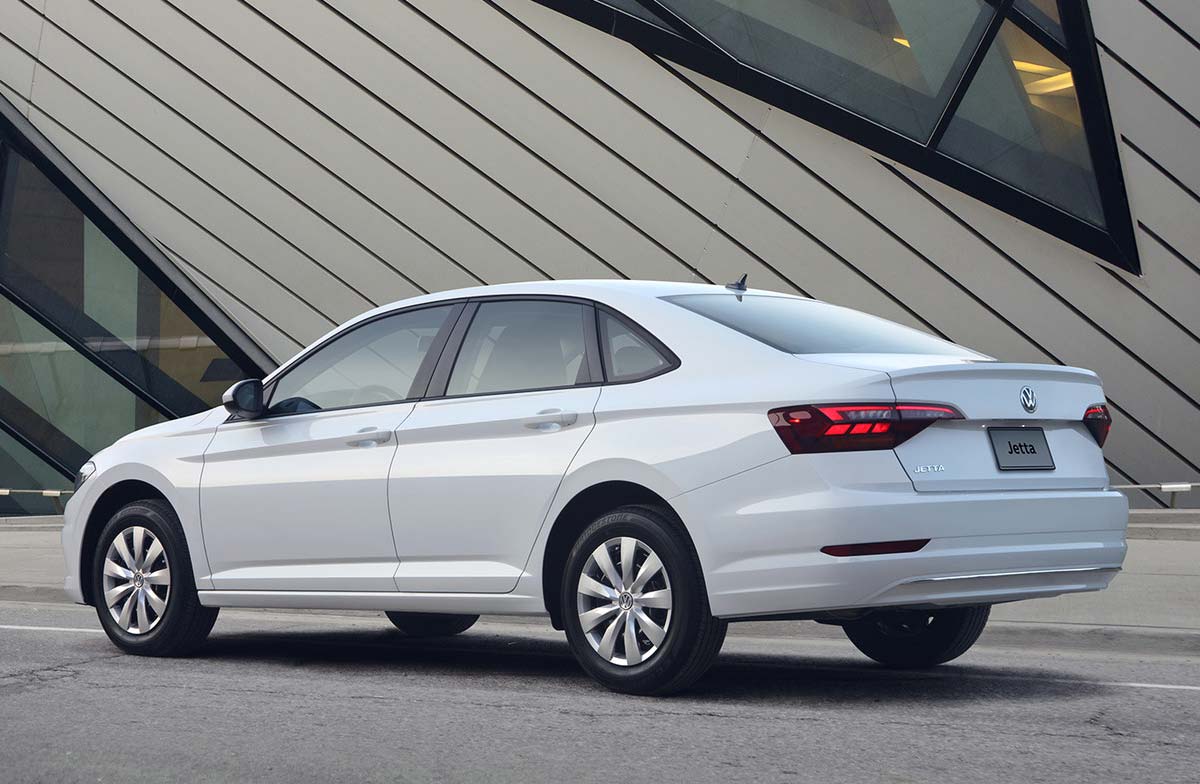 En el exterior, el Jetta más accesible incluye parrilla cromada, luces LED delanteras y traseras, espejos y manijas con el color de la carrocería y llantas de acero de 16 pulgadas con embellecedores de plástico.
